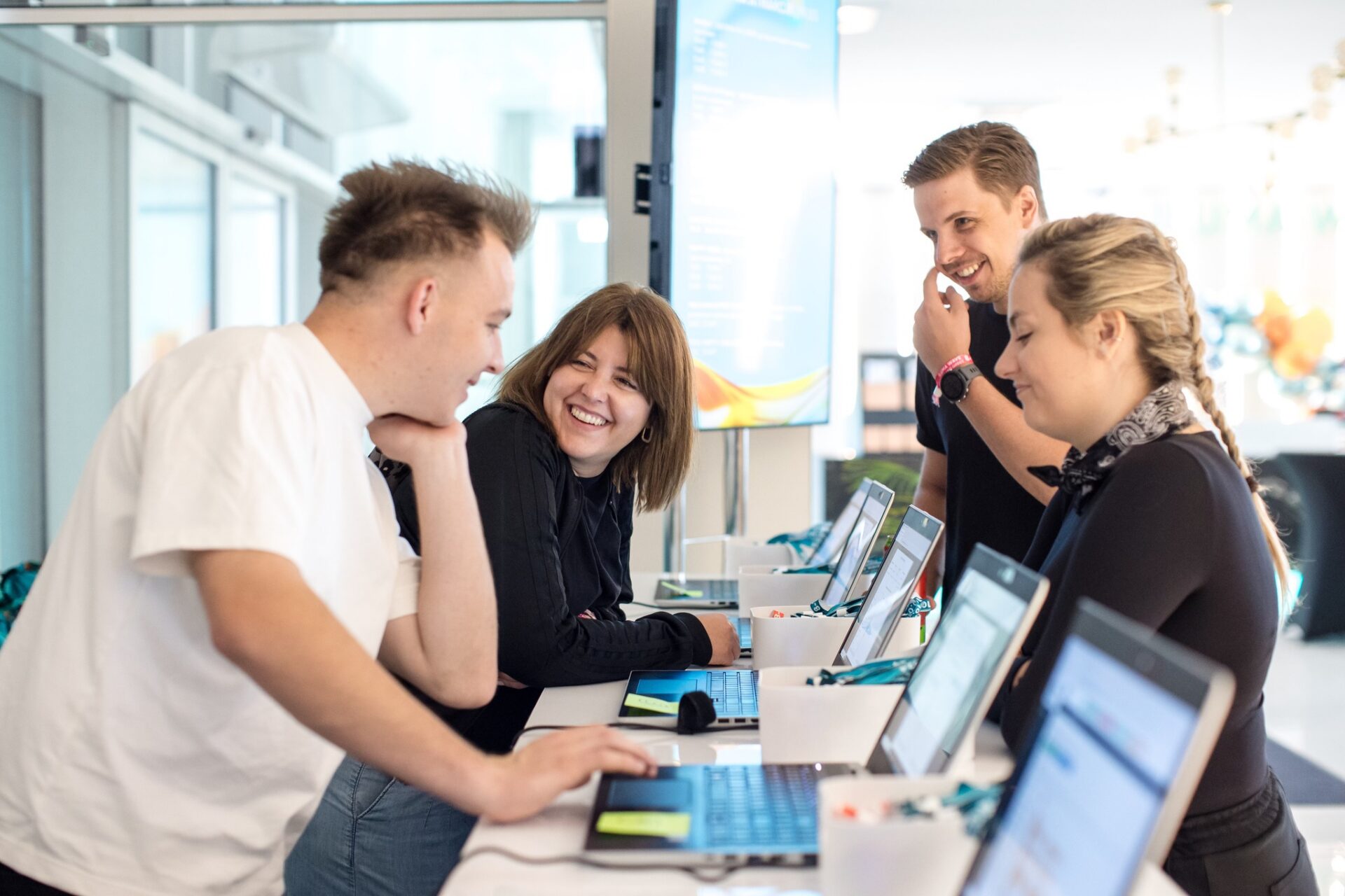 U nas codziennie masz kontakt z projektami, które realnie uczą. Chętnie dzielimy się wiedzą i uczymy się od siebie nawzajem – to część tego, jak tu pracujemy.